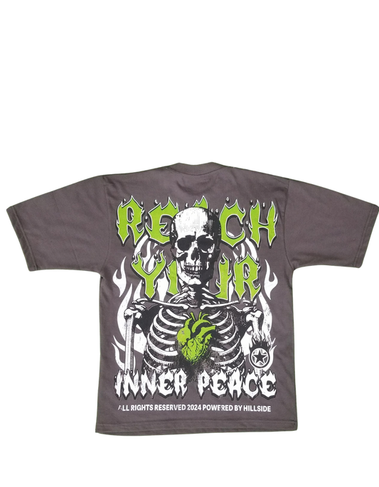 Grey & Lime Green “ Reach Your Inner Peace “ T-Shirt